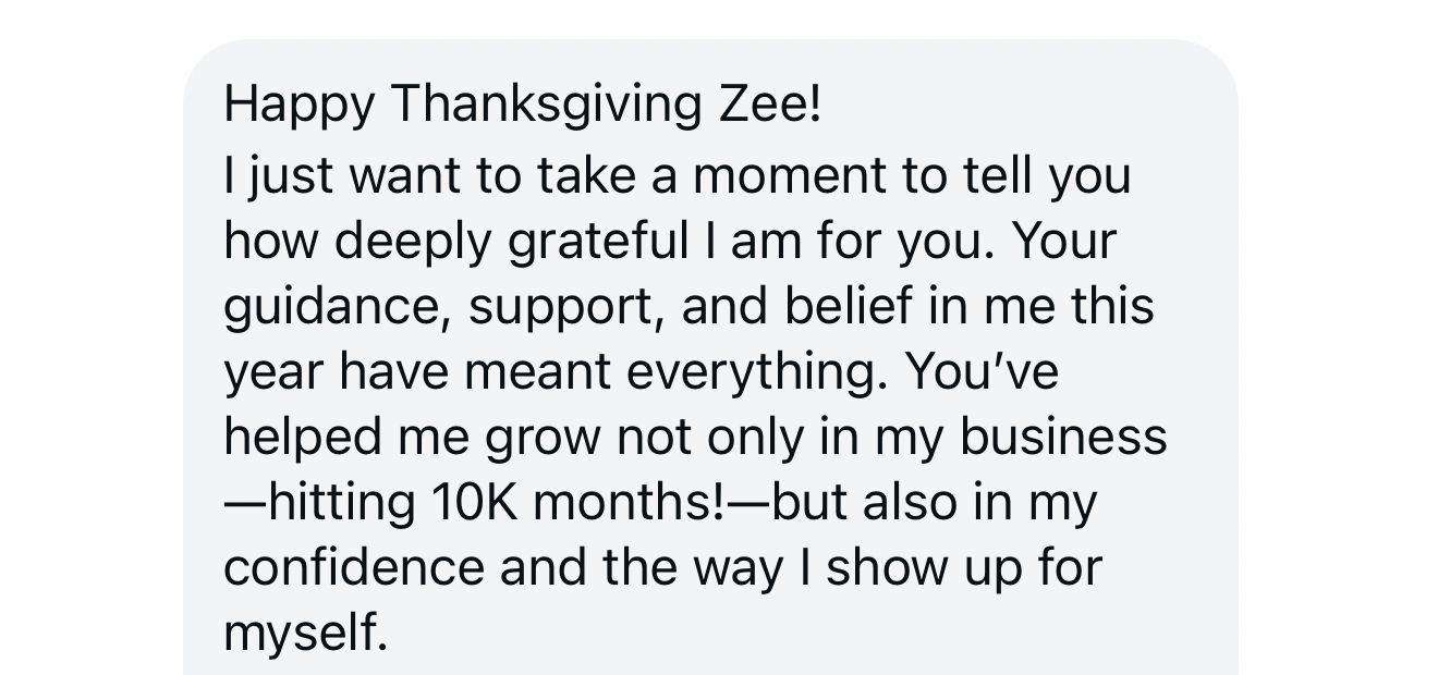 Zee is a former fitness studio owner turned online health coach turned strategy business coach.